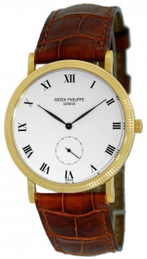 A stunning wristwatch with international appeal, the Patek Philippe Calatrava wristwatch features self-winding movement that accurately maintains the time with normal hand gestures. Crafted in high-grade precious metal, this wristwatch features a white gold case, which optimizes the kinetic energy used to power it.